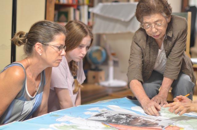 We are staying at the World Friendship Center, a non-profit organization founded by American Barbara Reynolds who was so moved by the plight of the Hibakusha, A-bomb survivors, that she devoted years of her life and livelihood to honoring Hibakusha, translating their stories in to English, and training Peace Park guides. The WFC arranged our meeting with Kasaoka, and her niece by marriage, Sachiko, who served as translator. We were moved in a profound way by Kasaoka’s story and her message for us: I used to hate Americans and it took me a long time to understand that it was not America that was to be hated. It was war itself. War is evil; nuclear weapons are evil. Kasaoka believes now that she must share her story often so that we can live in a world that rejects war. A world at peace.
