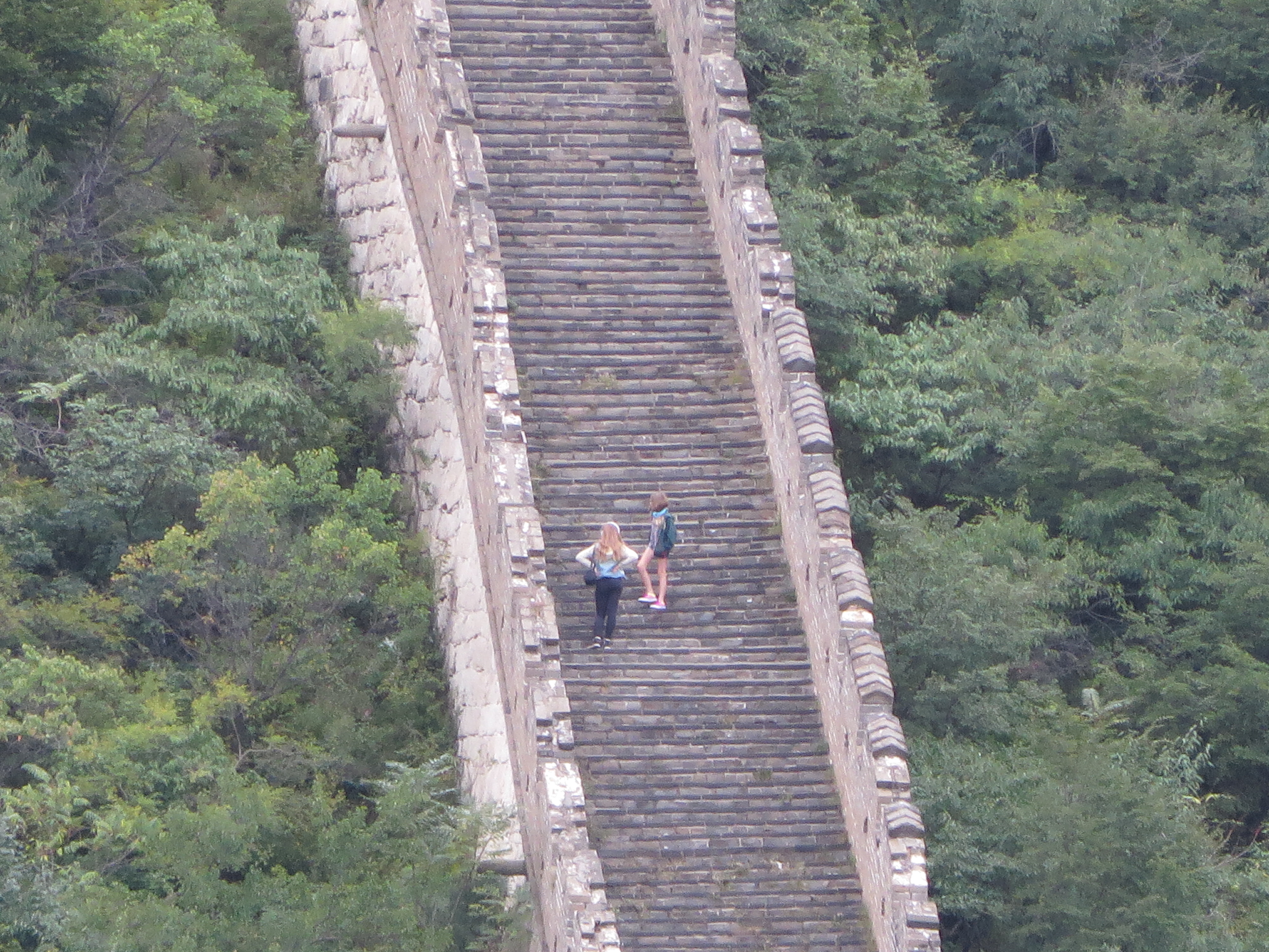 Our third and final day was spent at the Great Wall. The Mutiayu section was visited by “Billy Boy” says our new guide, Tim. Apparently the Chinese liked Bill Clinton very much.Tim is funny and presents us with a slide show of how the westerners and Chinese are different – a tongue in cheek comparison of our ideologies and lifestyles: western old people walk their dogs, Chinese old people walk their grandchild (singular); western people go to a party and talk in small groups all equal, Chinese people stand in a circle with the boss in the middle.