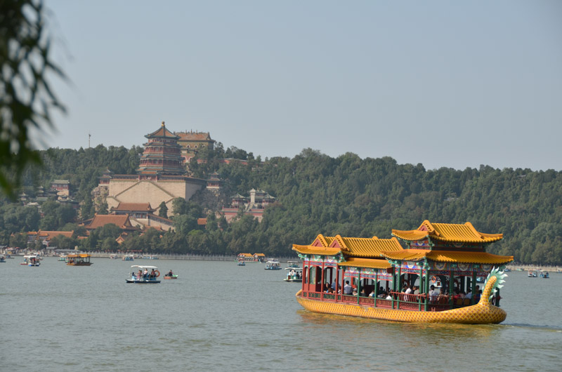 The Summer Palace was more pleasant. A large lake area, paddle boats, dragon ferry boats, people holidng hands and ambling along the bridges and trails up to the Palace. People stopping us to take pictures with our two girls (more on that later). There was space to move around and to appreciate the landscape and the history.