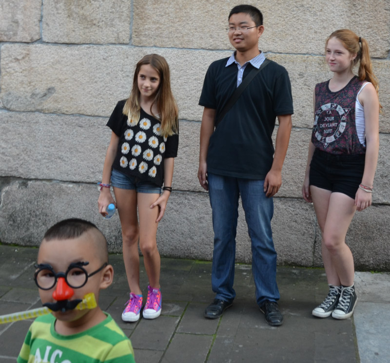 There seems to be little no appreciation or actual knowledge of Chinese history and culture. They crowd into ersatz historical streets designed to look like traditional China, but filled with knock-offs and tacky souvenirs. The terracotta warriors are just another opportunity to hop on a tour bus and follow a guide with a flag and microphone. Of course if there are two American girls there, it is a photo opportunity.