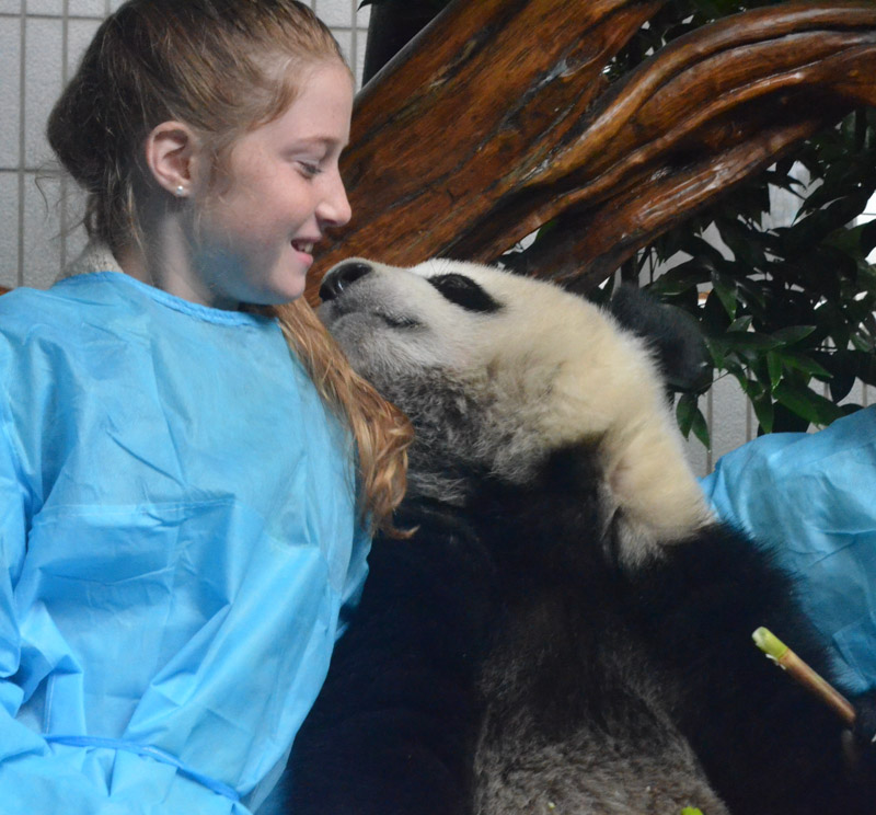 Our primary purpose in coming to Chengdu was of course the Panda. You may remember that Rose became quite the WWF (World Wildlife Fund) supporter last year, raising money through lemonade stands with the help of friends and adopting endangered species. So when I began planning the trip to China last fall I knew we would be coming here to volunteer at the Center. We then also secured one of the coveted opportunities to hold and be photographed with the Center’s one-year-old cubs. (The newborns shown in the link are too fragile to be handled and are kept in a kind of NICU for the first two months.)