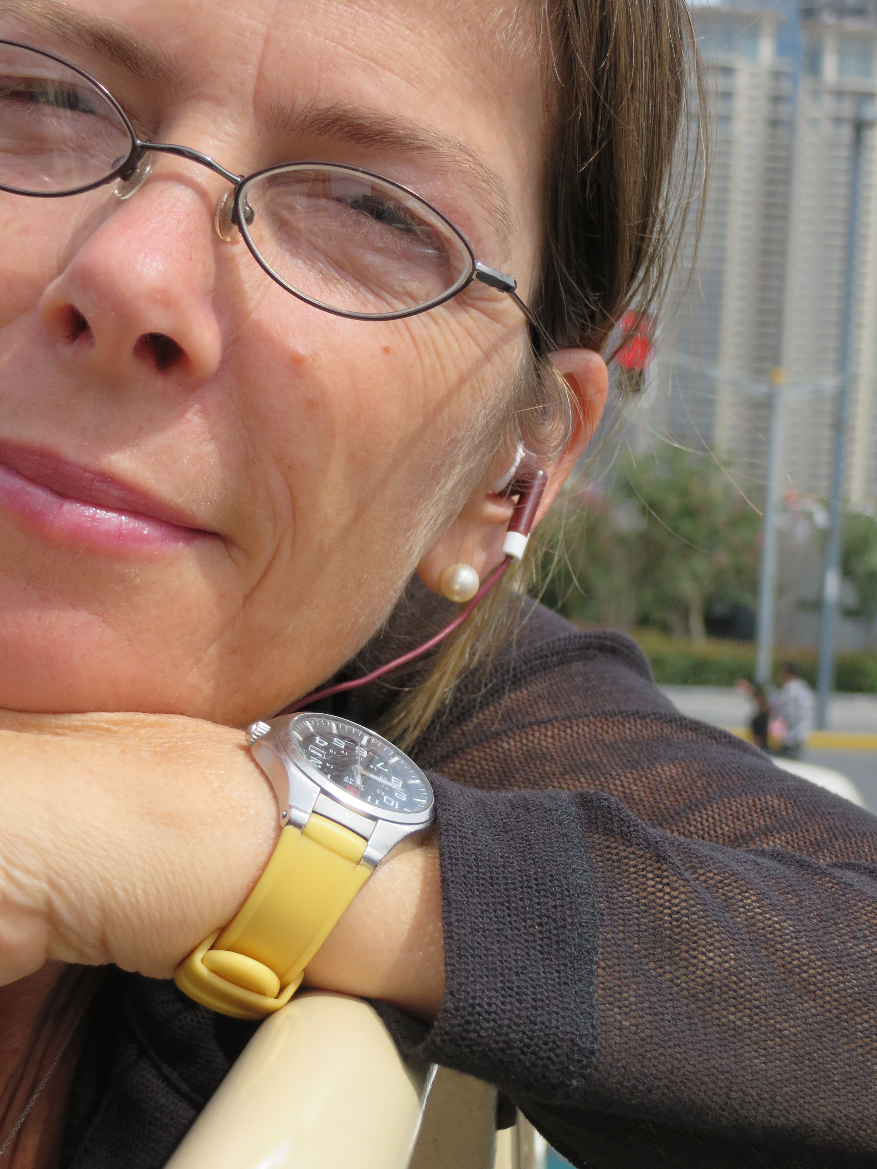 Fortunately a few minutes later a cab stops and an Asian woman gets out. We ask her to give directions to the taxi driver. She does, but he won’t go to Kowloon, because his shift is ending. She does write down the directions for us in Chinese.