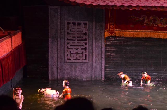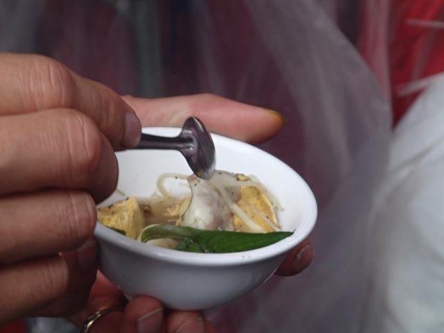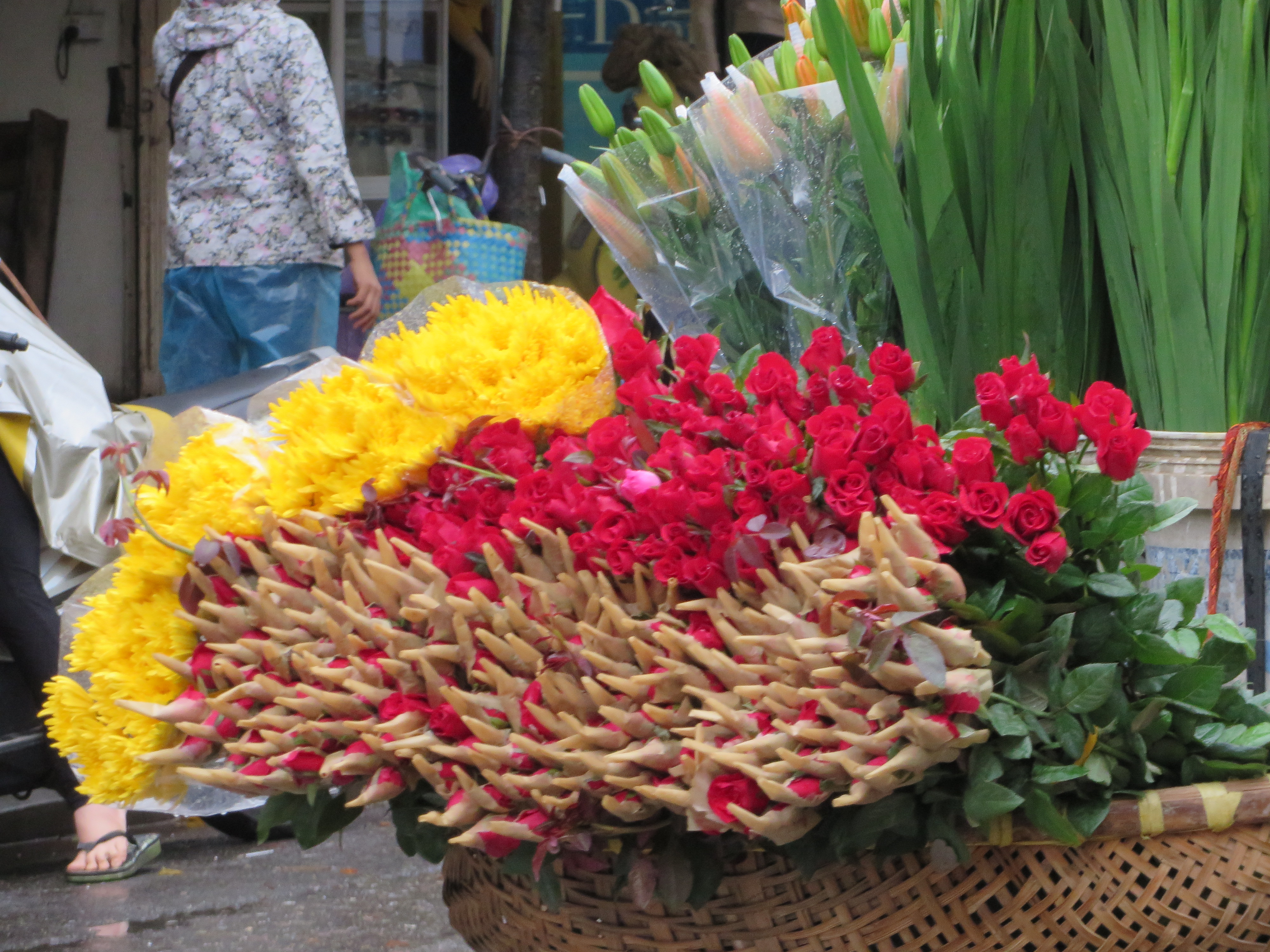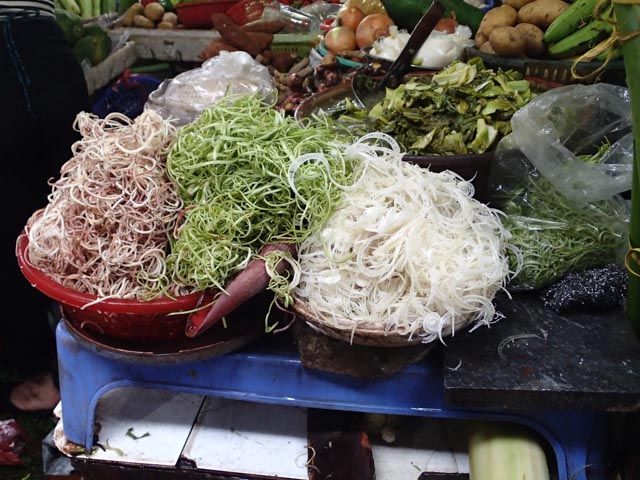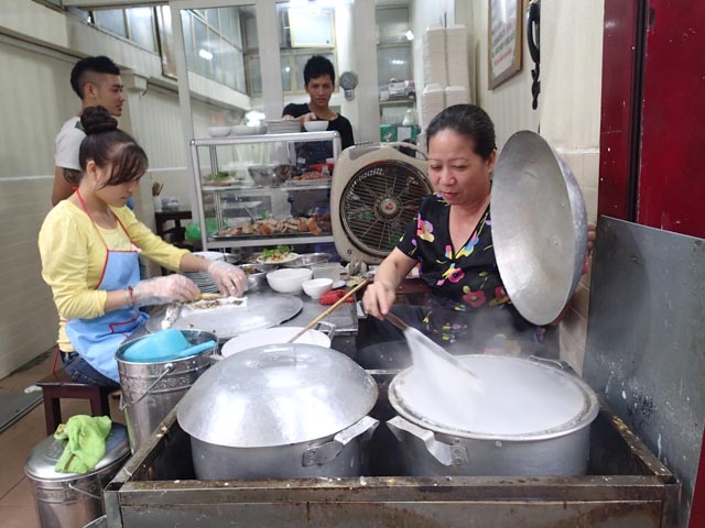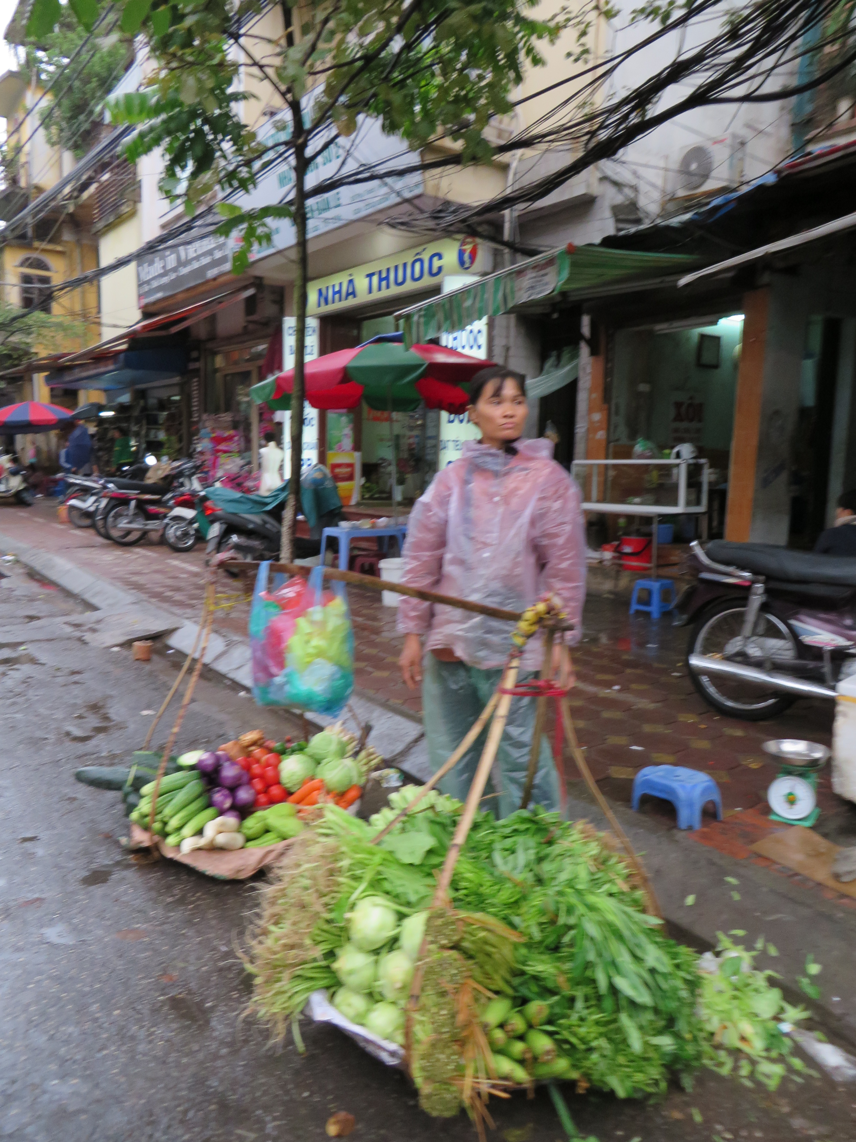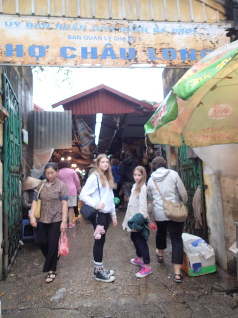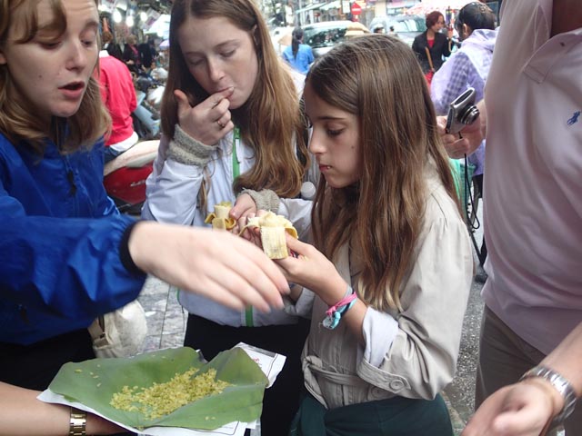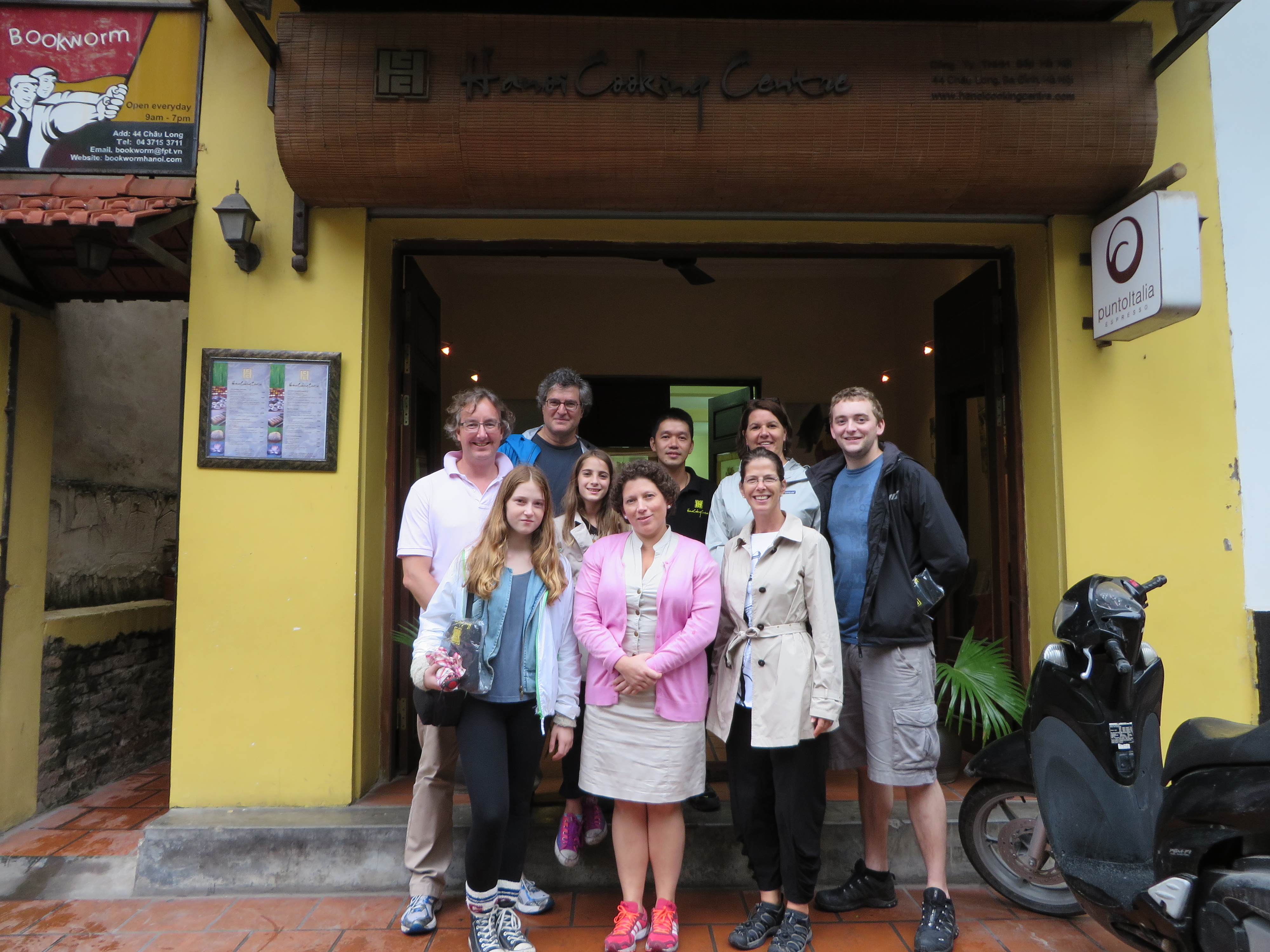 It wasn’t all crazy food though. I didn’t take detailed notes of each stop but basically it was a moving feast of several courses: we started at 9:15am with traditional breakfast food, Pho, moved to rice pancakes with pork and fried shallots (sweetened with that water bug), then a walk through the local market followed by a quick stop for green rice with banana (yum!), deep fried shrimp and sweet potato cakes, bun cha for most of us (snails for Simon), then an “unmentionable” that none in our family could stomach, rambutan fruit, “bia ha noi” (beer Hanoi) and ended at 1:30pm with amazing Vietnamese coffee from a purveyor who has been in business for 80+ years and whose “weasel digested coffee beans” served as the state gift to President Obama when he visited Vietnam. I didn’t photograph the “passed” weasel and you can thank me later.