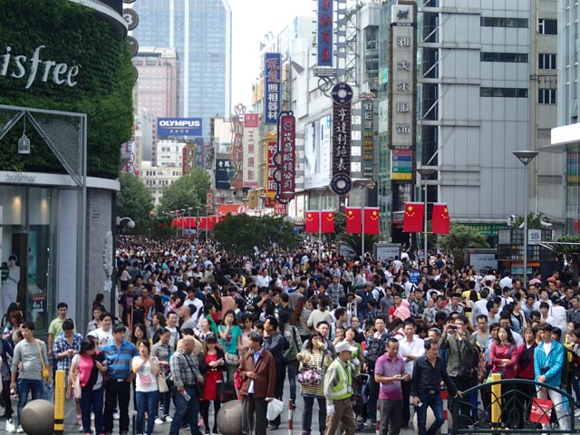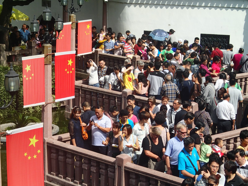 According to the Shanghai Daily paper, the old Shanghai area of Nanjing Street and Yuyen Gardens was visited by 5.8 million people during Golden Week; the Bund (the famous and historic walkway along the water) by 4.3 million. It’s impossible to capture the crowds in photos.