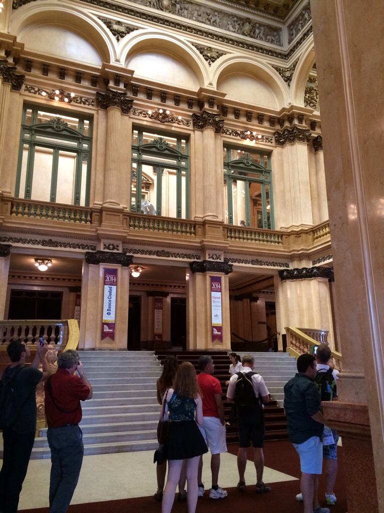 We spent the first day settling in and getting straight to business with Argentine beef:  a burger at mid-day and steaks at night (Argentinians eat lunch at 2pm and dinner at 10pm).  Sunday we explored our neighborhood and El Ateneo Splendid, an old theater transformed into a bookstore.  It is Carnival so local businesses are closed for holidays but the streets are busy from midnight to 3am with drumming and singing and dancing – or so we heard!  We didn’t stay up long enough to find out.