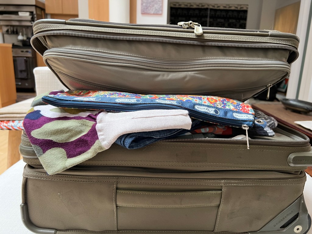 I couldn’t close the suitcase unless I cheated (fully extended and then compressed it). And from the start I knew I was doing it all wrong. I have counselled many friends on how I pack for a extended trips. I’ve said, “start with the shoes and be practical.” Keep your bag light with “5-2-10: no more than five pants, two dresses, 10 tops and a jacket.” I didn’t heed my own advice.